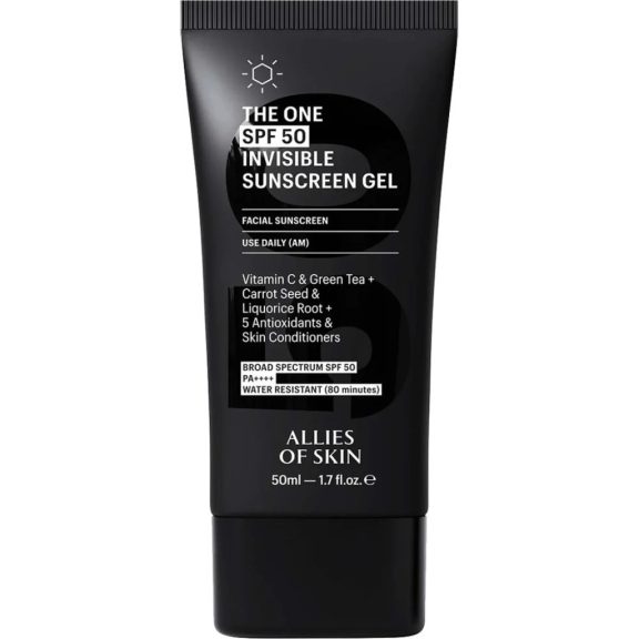 Az Allies of Skin The One SPF 50 Invisible Sunscreen Gel egy innovatív, teljesen átlátszó napvédő gél, amely láthatatlan pajzsként óvja a bőrt a káros UVA és UVB sugarak ellen. Könnyű, víztiszta formulája azonnal beszívódik, nem hagy zsíros érzetet vagy fehér réteget, így bármilyen bőrtónuson és minden bőrtípuson – még szakállon is – tökéletesen mutat.